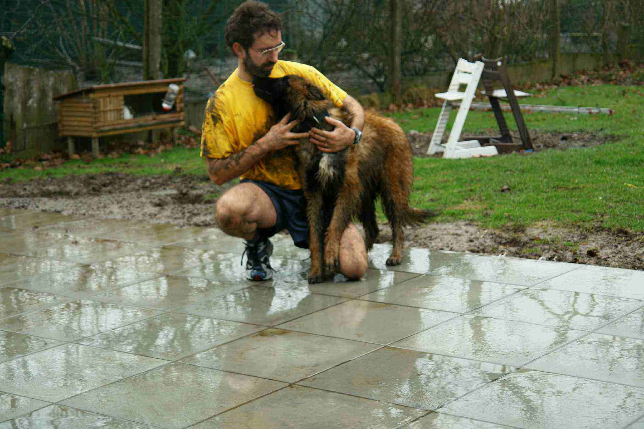 11 maart 2006: Mijn papa en Elgos tijdens hun loopbeurt. Ditmaal duidelijk door en in de grachten van Bellegem Bos! |