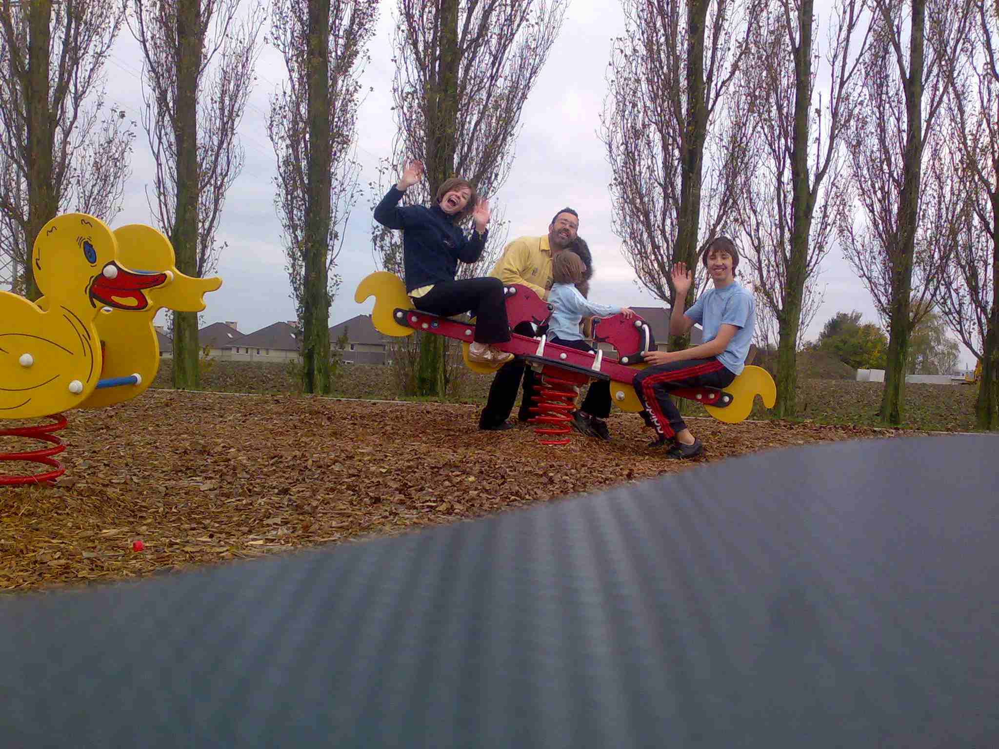 02/11/2008: Ons gezinnetje met alle vijf op een vier-schommel. |