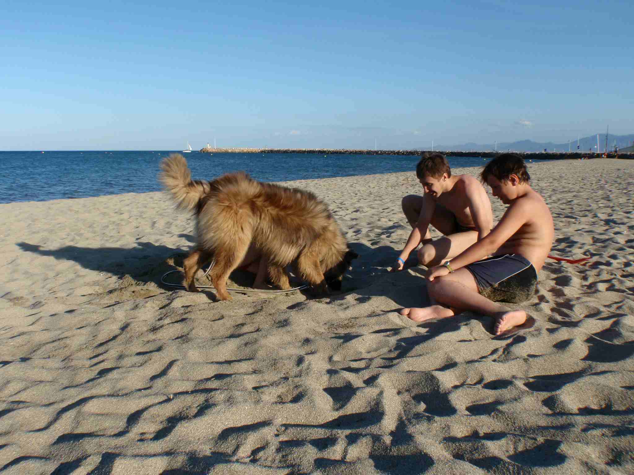 10-landenreis: Idem, aan strand 3: wij verstoppen de bal en Elgos moet hem terug uitgraven |