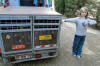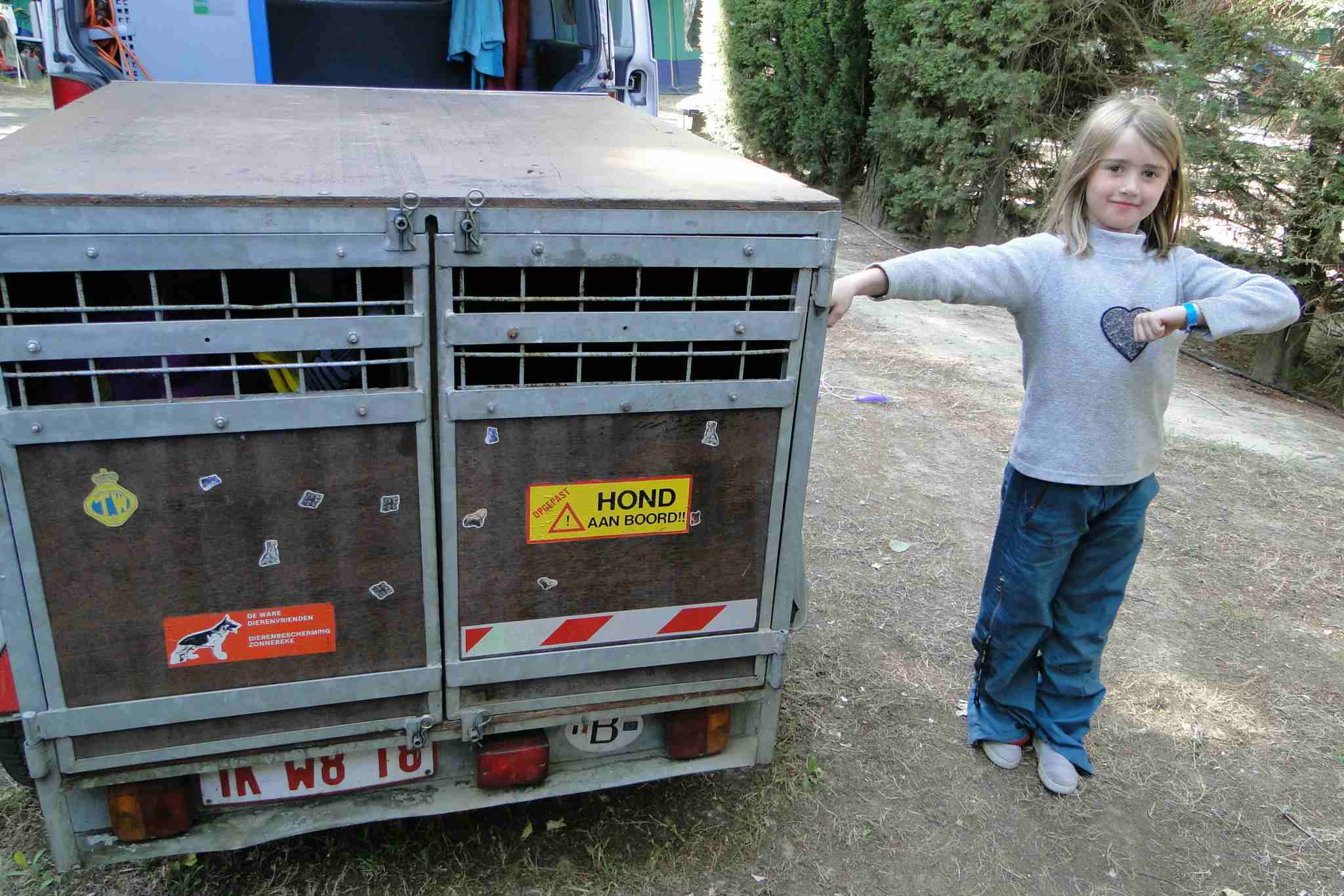 11/07/2009: intussen auto wat opgekuist. Hier zit mijne Elgos en hij vindt dat leuk onderweg (fris genoeg door de wind) want hij springt er graag in |