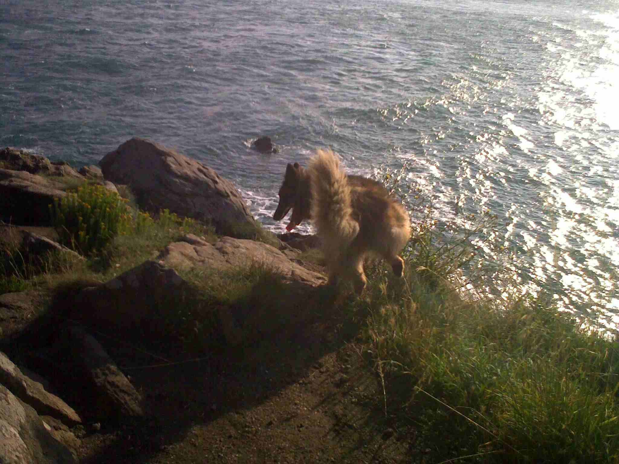 Voor mij veel te koud, maar elk jaar duikt mijn vader op 1 november de zee in. Elgos moet mee van mijn strenge papa om 'sterke Elgos' te worden... |