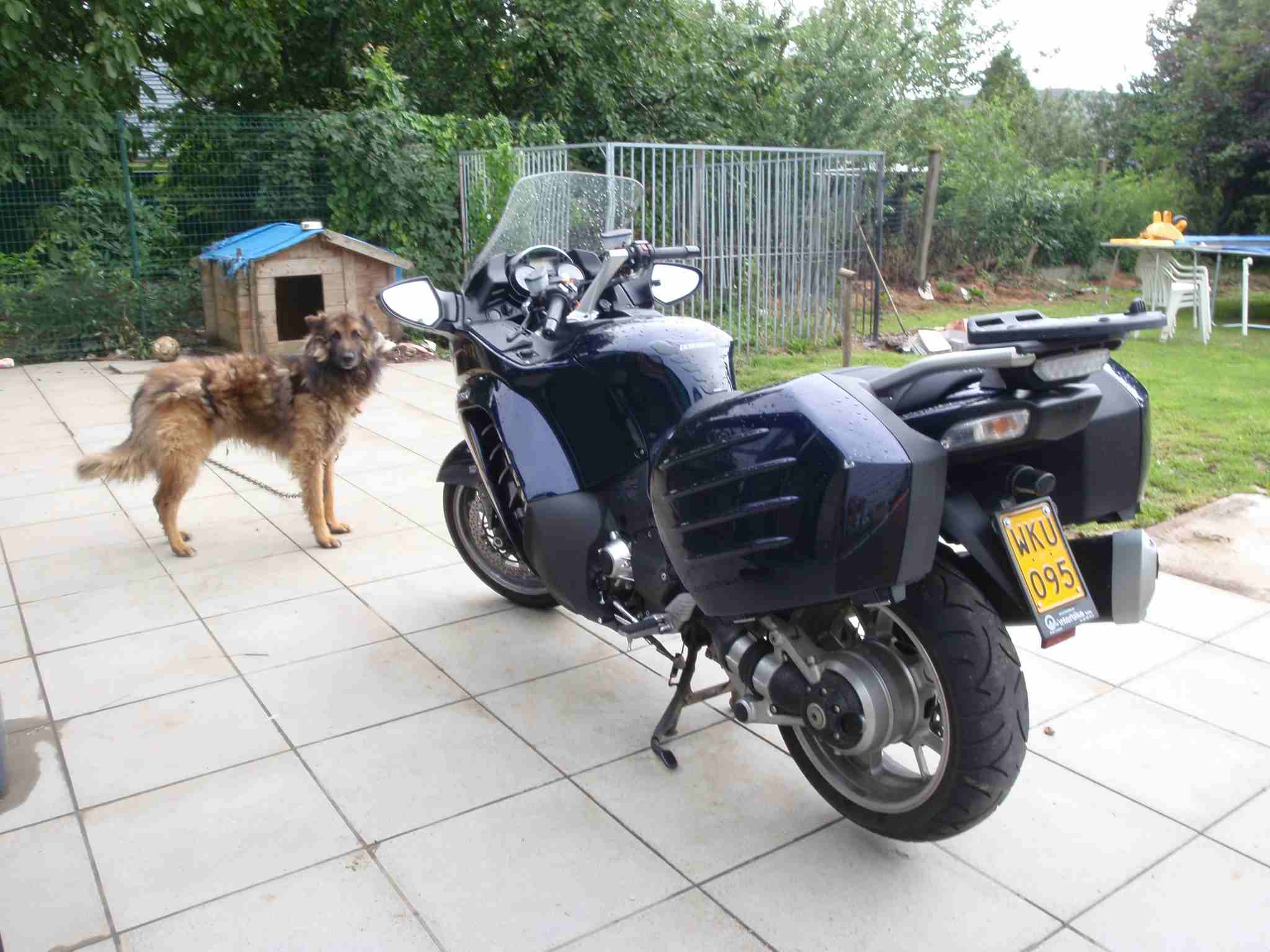 23/07/2010: Elgos kijkt naar de moto die mijn papa moet uittesten. Mijn papa zal 603 km halen met één tank . Denken ze daarom dat hij soms gek is? |
