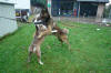 Nu eet Elgos mijn papa zoals gewoonlijk levend op. Zeeeeer gevaarlijke hond. |
